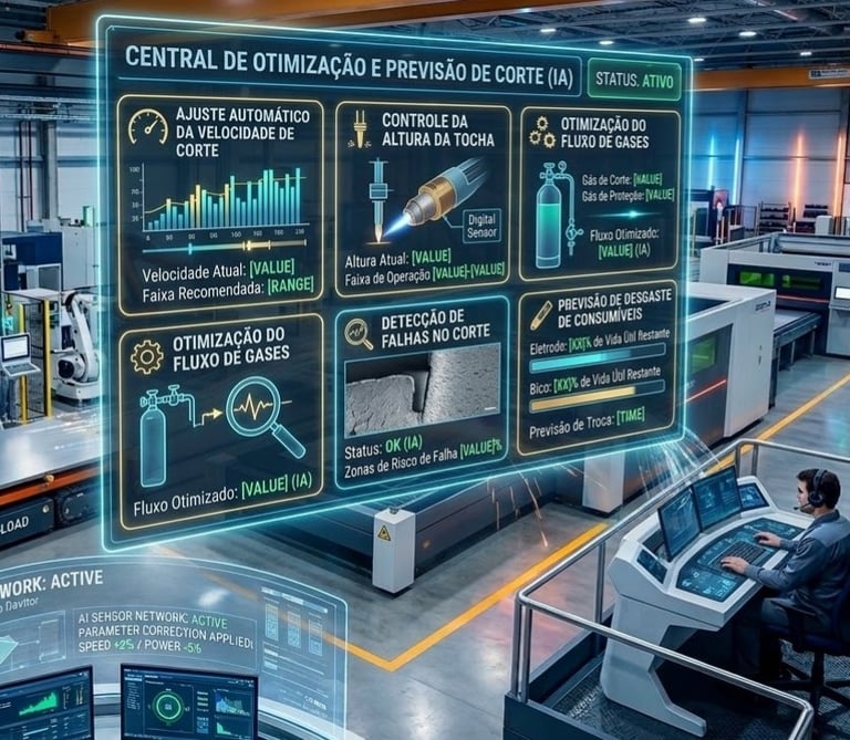 Com sensores e análise de dados em tempo real, a máquina passa a ajustar automaticamente os parâmetros de corte.